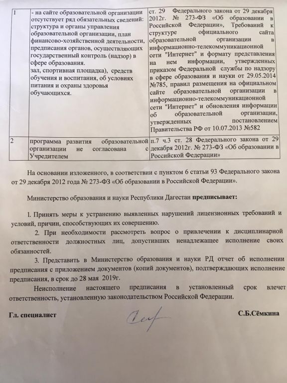 Предписания органов, осуществляющих государственный контроль (надзор) в сфере образования, отчеты об исполнении таких предписаний (при наличии)